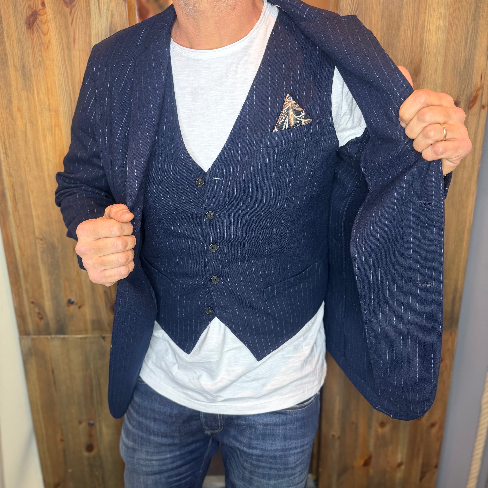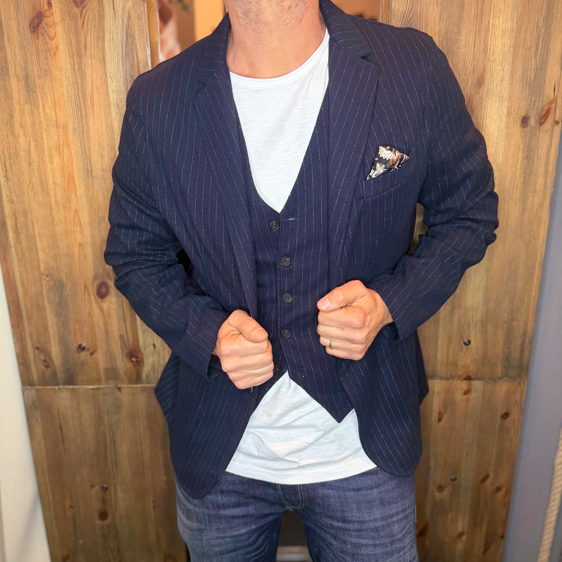 Giacca e gilet gessato blu