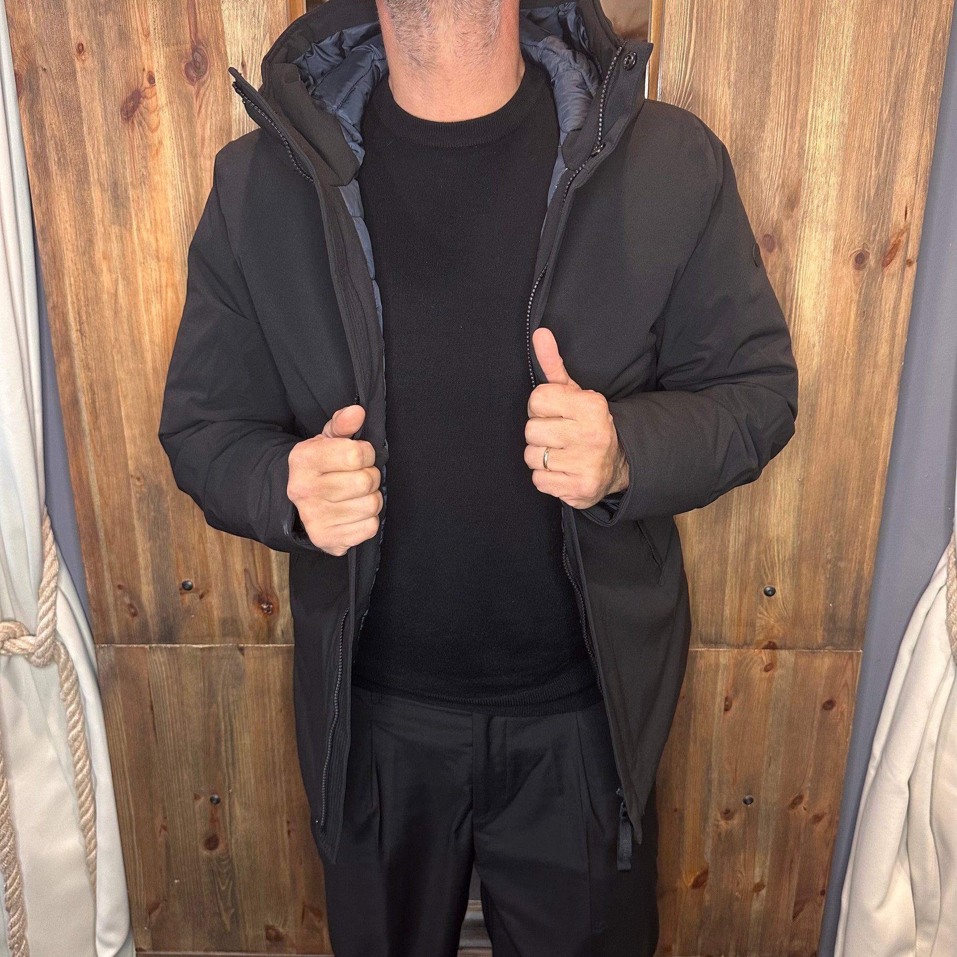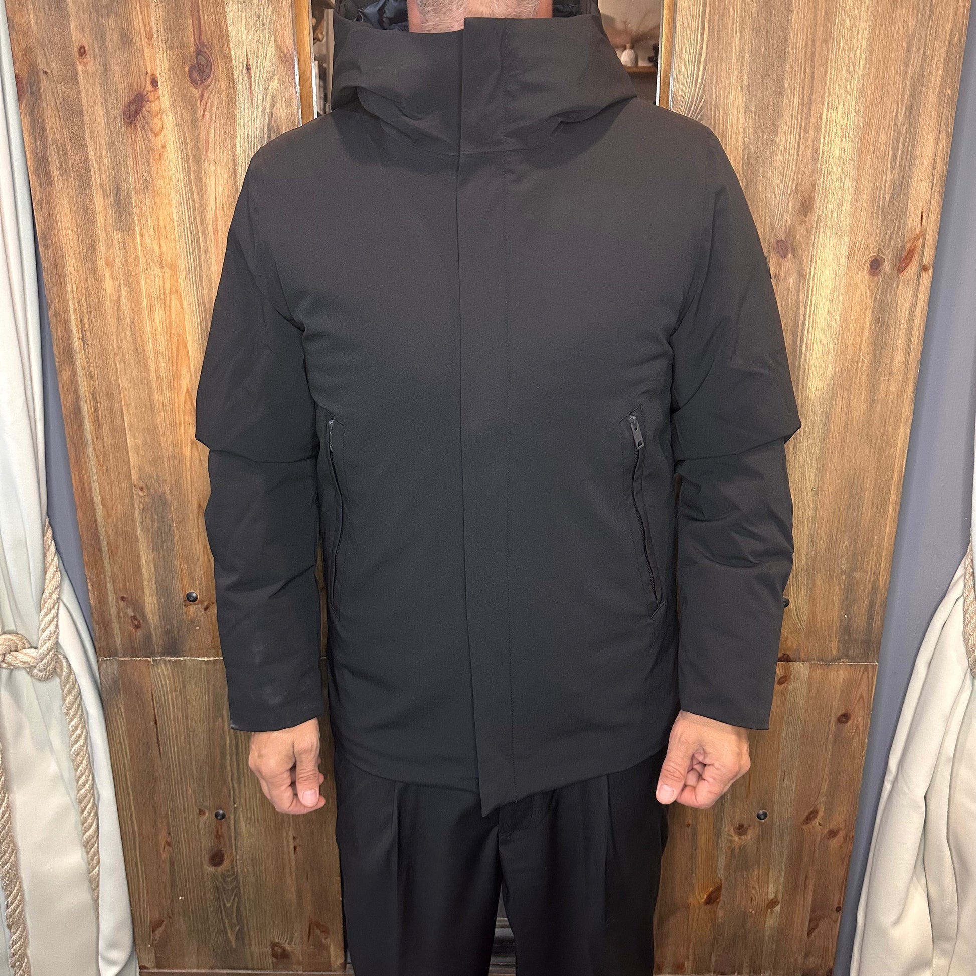 Vhinner è una giacca invernale pulita e con cappuccio di media lunghezza realizzata in un tessuto attivo Pet Poly