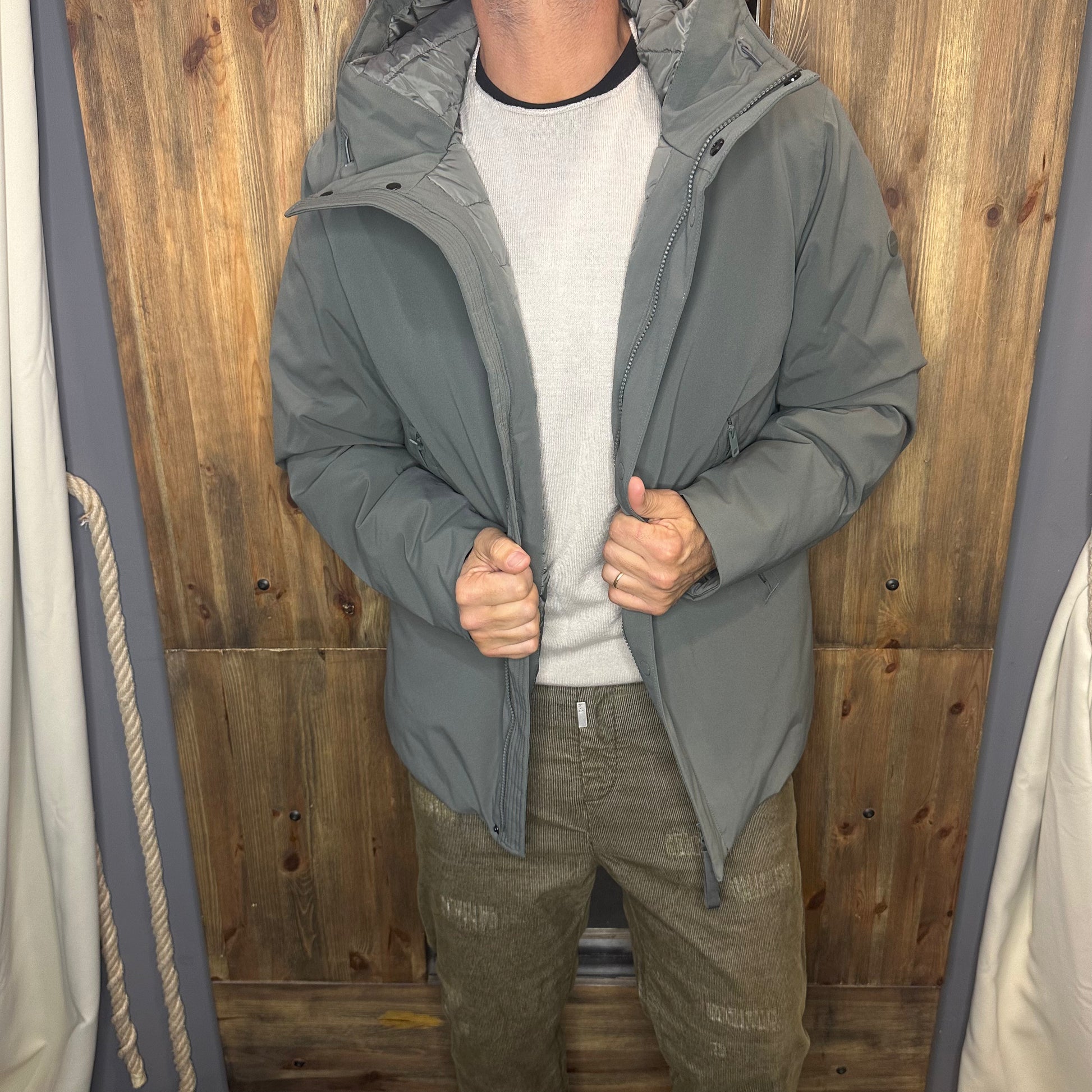 Vhinner è una giacca invernale pulita e con cappuccio di media lunghezza realizzata in un tessuto attivo Pet Poly