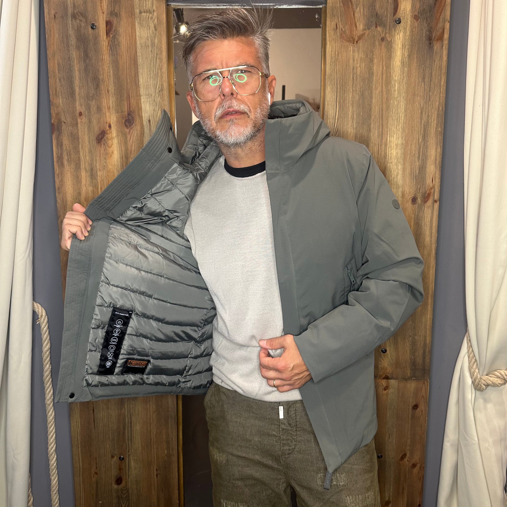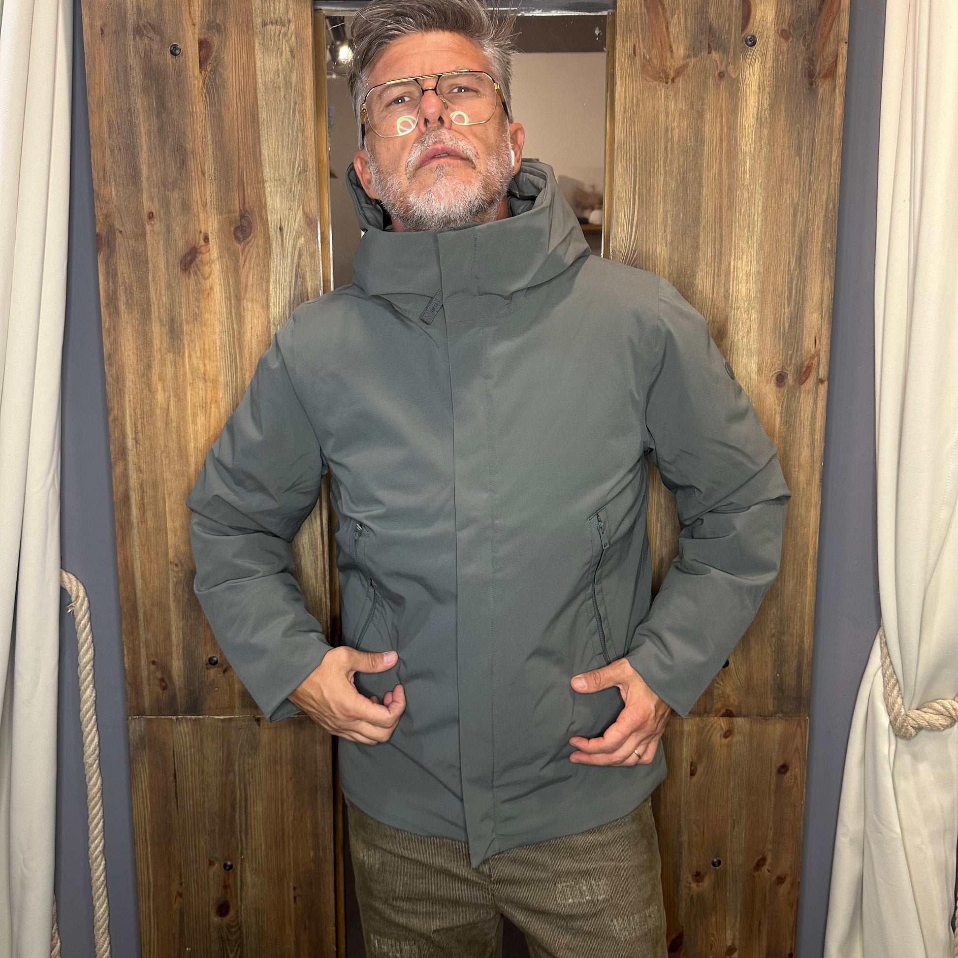 elasticità meccanica, asciugatura rapida e una brillante elasticità del colore per mantenere la tua giacca fresca, stagione dopo stagione. È stata aggiunta una membrana che rende il tessuto antivento e impermeabile.