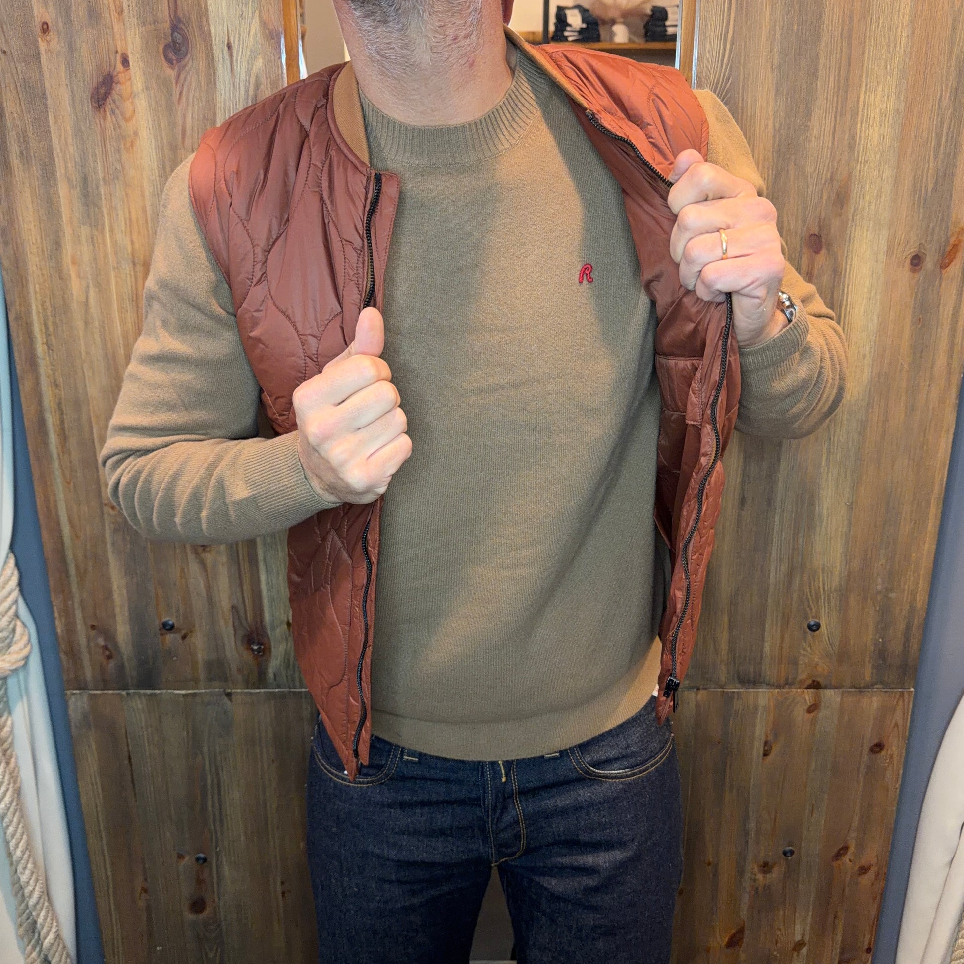 Pullover girocollo realizzato in misto lana, un tessuto morbido e confortevole al tatto. Il modello dalla vestibilità rilassata conmaniche lunghe e spalla leggermente scesa è caratterizzato da una lavorazione a costine su girocollo, polsini e fondo capo. Il design minimal è arricchito dall'iconico ricamo R a contrasto sul petto.