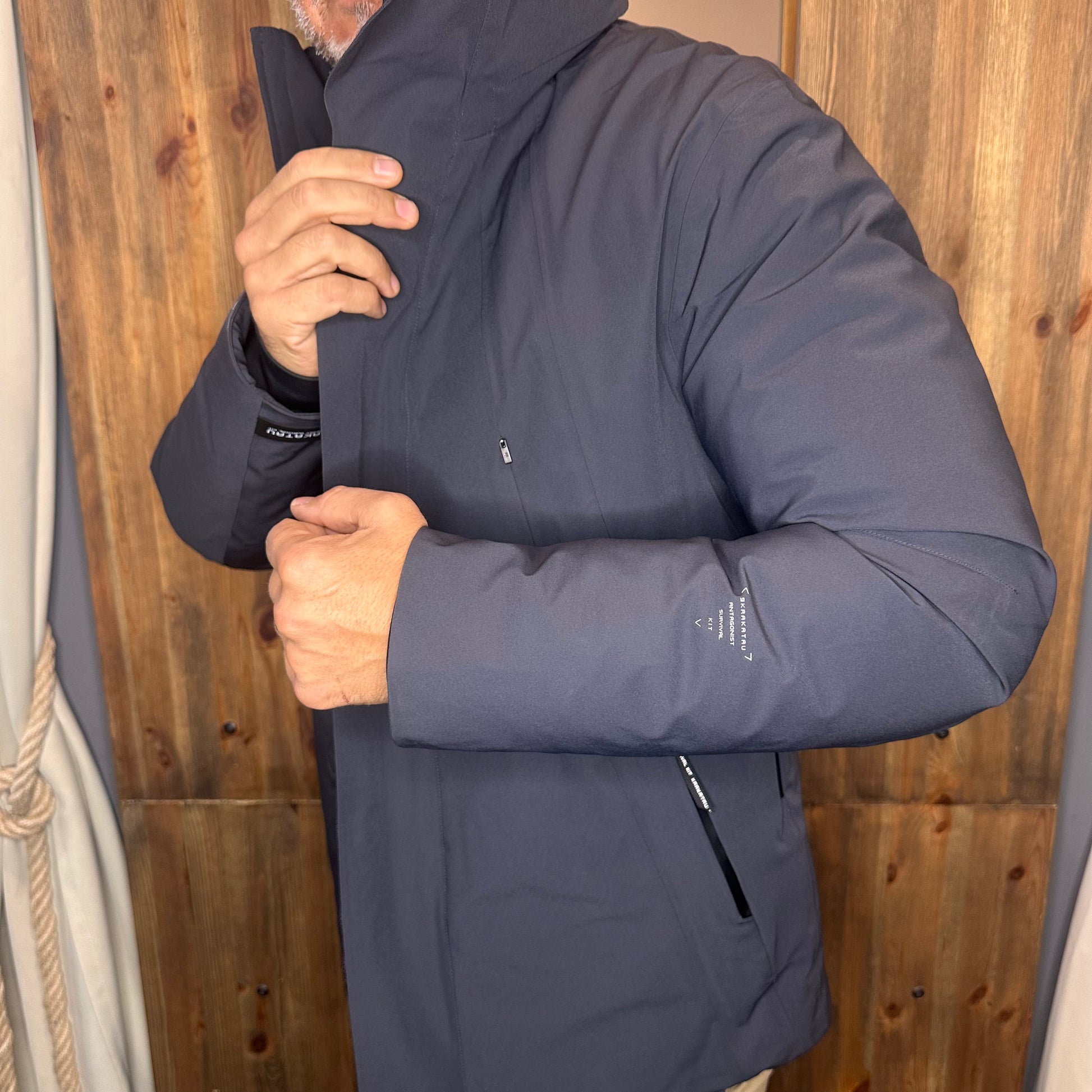 Cappuccio pieghevole impermeabile con coulisse, si ripone nel colletto