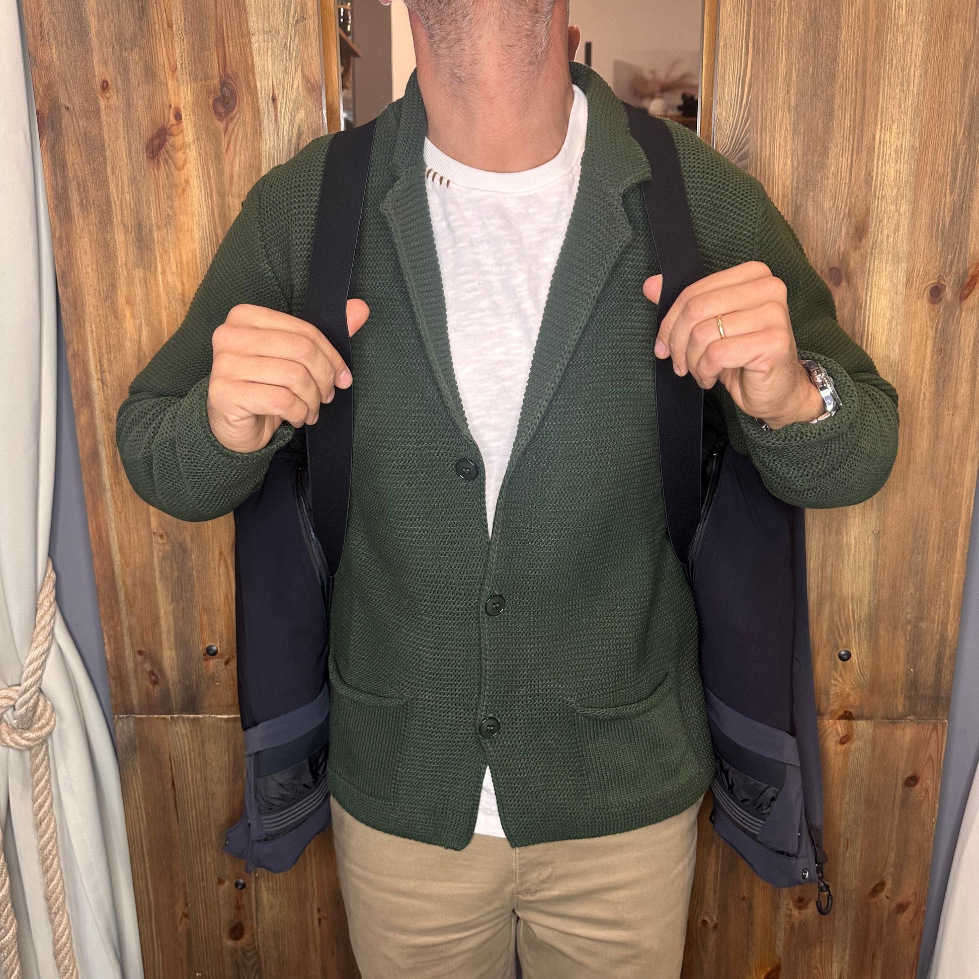 - Tasca sul petto con cerniera e scomparto interno in rete